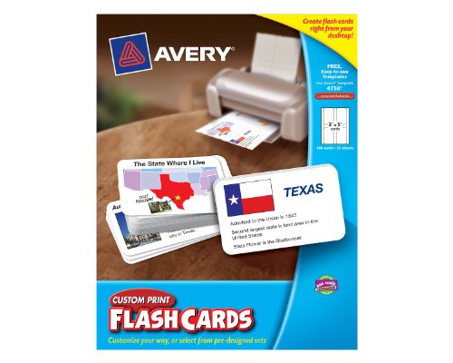Price Of Avery Custom Print Flash Cards, 3 x 5 Inches, for Inkjet and Laser Printers, 100 Pack (04750)