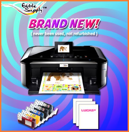 MG5320 Cake Printing System including following: * (1) New Canon MG5320 Ink Jet Printer * (1) New Print Head * (1) Set of High Capacity Edible Ink Cartridges with IC CHIP( Hi-Cap Black, Black, Cyan, Magenta & Yellow) * 12 Sheets LUCKS Edible Print-Ons Sheets (1/4 sheet size) * Free Customize Lucks Edible Paper Template Software Download (Choose your language - English, Spanish, French, Portuguese, German, Russian, Italian) * (1) Power Cord * Printer documentation CD-ROM containing drivers and software (Windows and Macintosh) * 60 Day Warranty on Cake Printing System by EdibleSupply.com - No warranty outside of USA